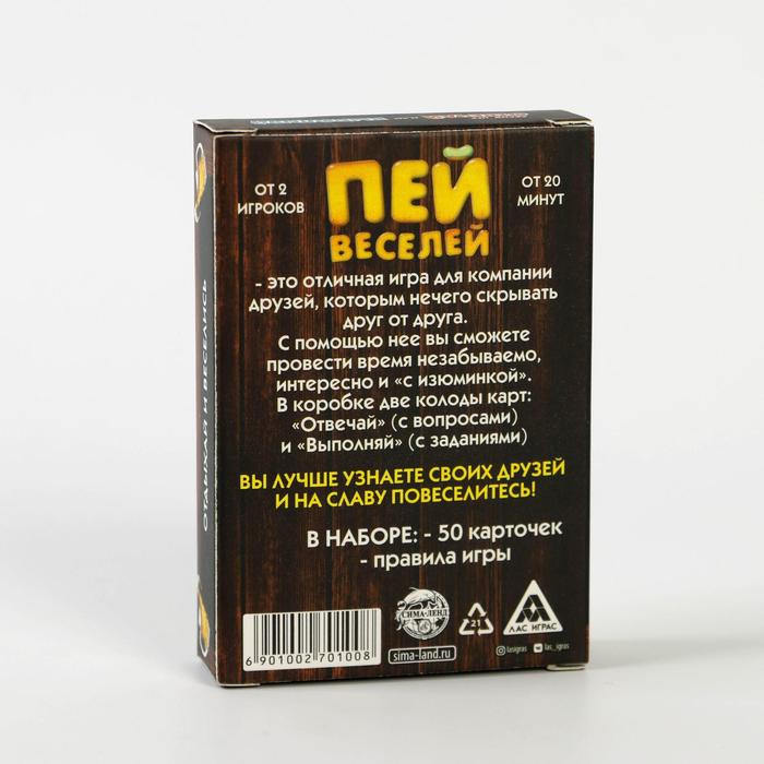 Купить игра для компании "пей веселей" 50 карт от 180 руб. с доставкой до пункта выдачи в Верее. Интернет магазин ДекаМаркет. Оплата при получении.